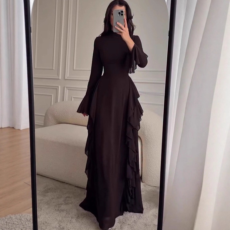 Style: Round neck, Long sleeve, Mid-waist, One-step skirt
