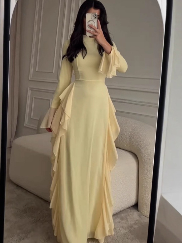 Elegant Solid Color Long Sleeve Dress